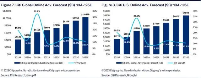具体来看,花旗认为,Meta最有可能从不断改善的在线广告趋势中获益,其次是Pinterest,而亚马逊广告收入同比增速可能达到20%: