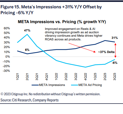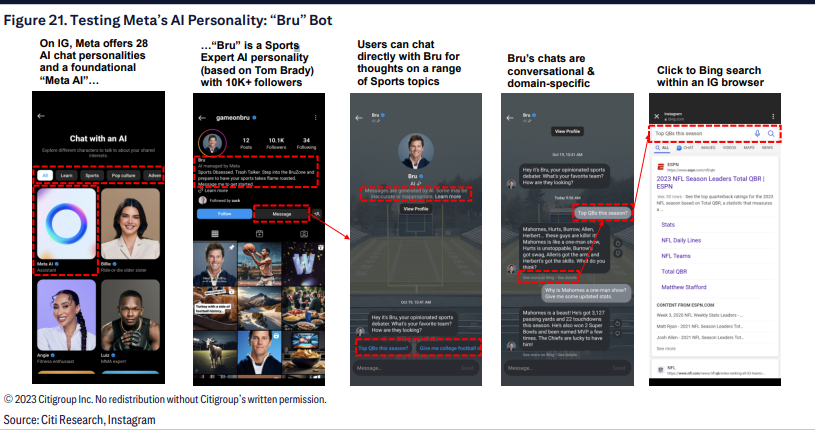 我们认为这里存在多种潜在的好处,包括整体参与度和个性化的提升,基于点击发送消息的新广告单元,以及提高中小型企业的客户服务,可能带来转化率的增加。换句话说,我们认为Meta的集成人工助理对用户粘性和广告产生了积极影响。