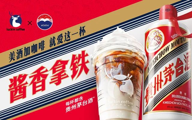茅台联名瑞幸推出“酱香拿铁”,一个靠茅台国民度打开高端商务市场,一个靠瑞幸的强社交属性拓展年轻消费群,实现联名双赢。