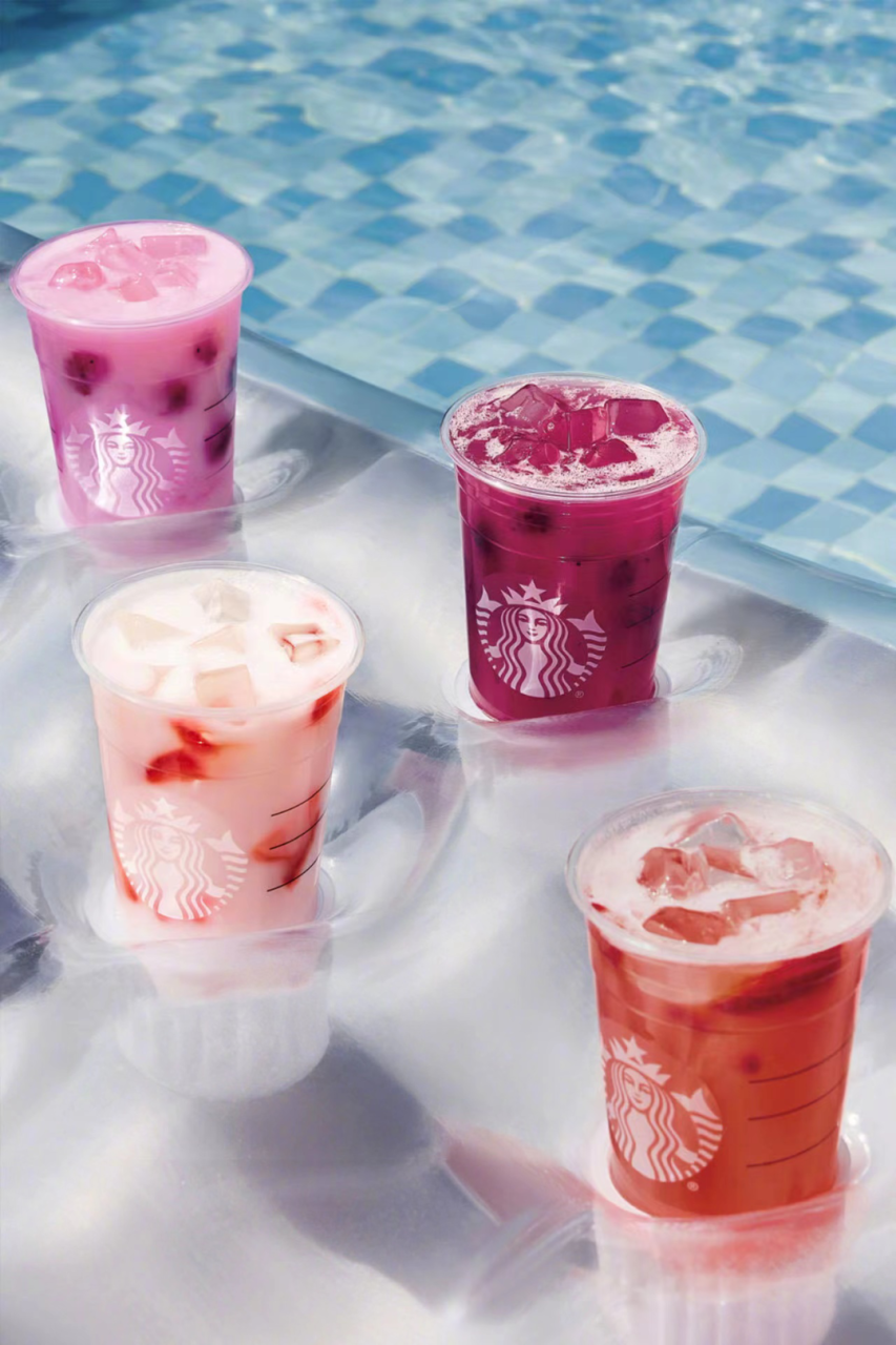 比如,星巴克推出了多巴胺配色新品Pink Drink 粉粉生咖、Dragon Drink幻紫生咖。
