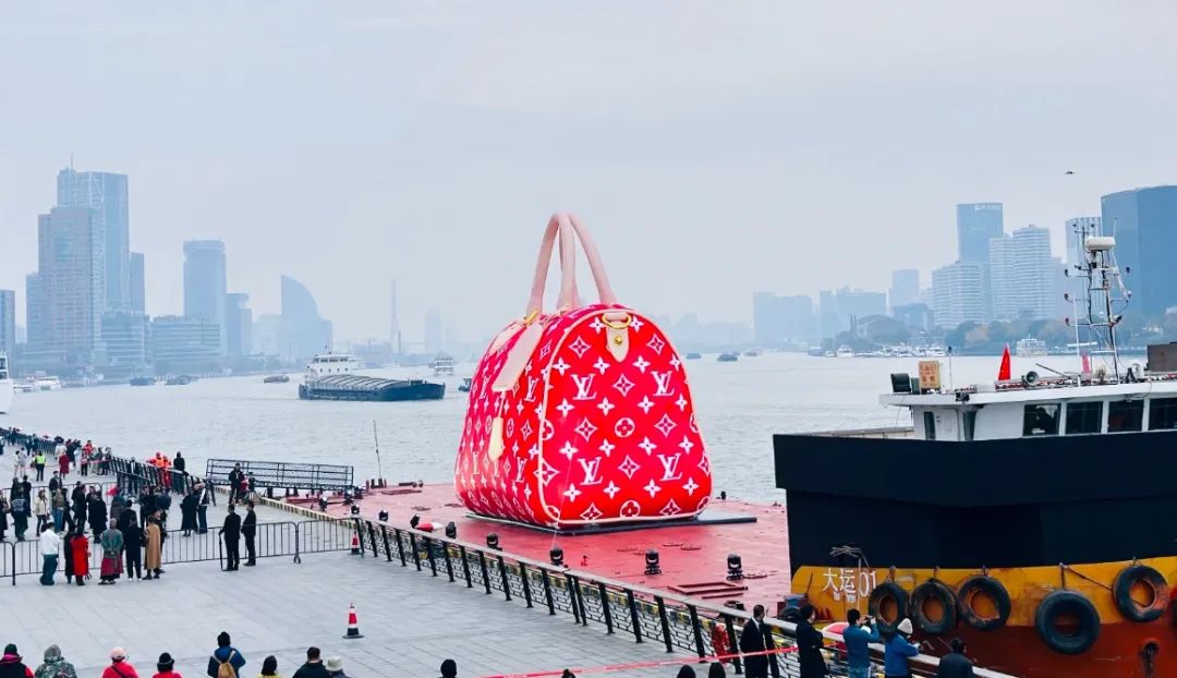 LV在上海黄浦江打造了一个巨型手提包,为即将到来的时装秀做好预热;