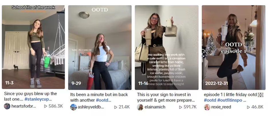 现在Stanley的品牌标签是时尚单品、OOTD(今日穿搭)、明星同款,还有高颜值、松弛感、多巴胺等等。