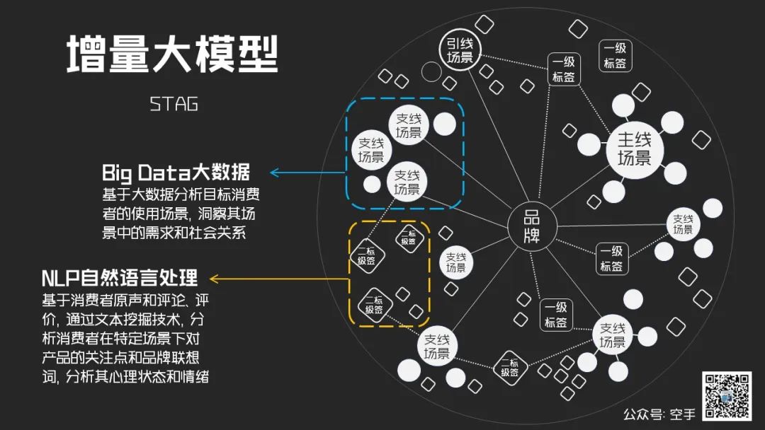 这个抓场景-贴标签-做增量的链路打法,我把它叫做增量大模型。用一个公式来表示,那就是——Setting场景+Tag标签=Added Growth增量增长,所以我又把这个模型叫做STAG模型。