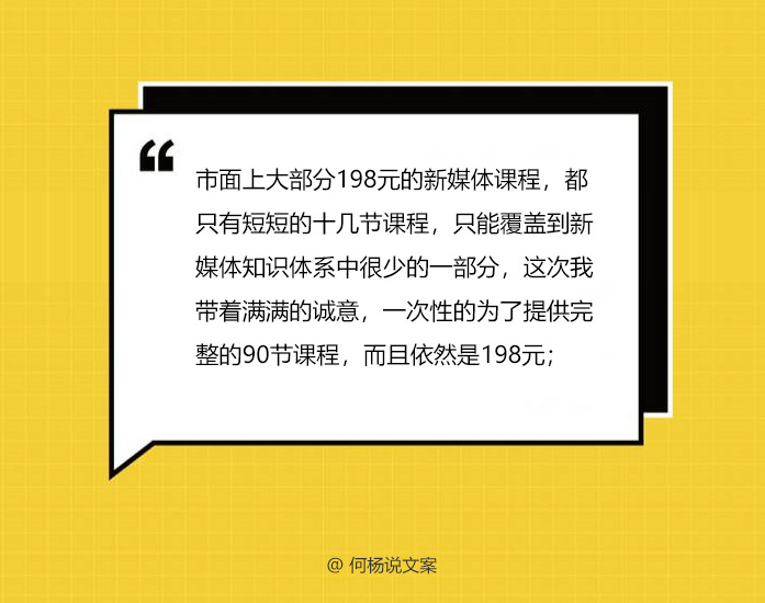 先把用户对于新媒体的课程平均认知价格拉到198元,种下一个锚点,在对比,198元的课程我们的品质是最高的。