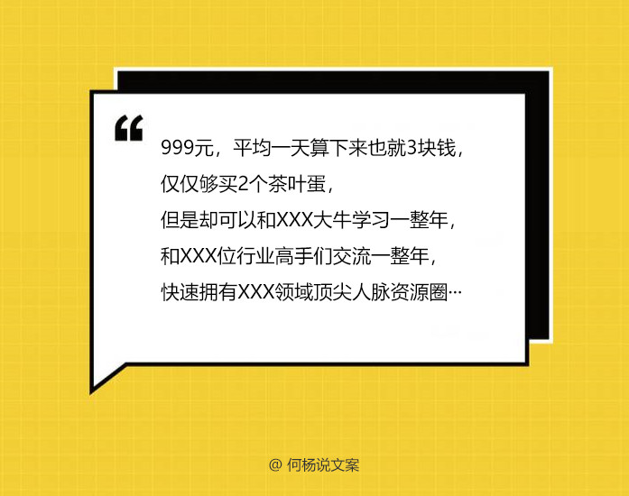 比如你是做付费社群的,年费999元/年。如果让用户从生活必需品这个心理账户来支出,那么用户会认为太高了,没有必要,999元还不如吃点好吃的来的实在。但是,如果我们说: