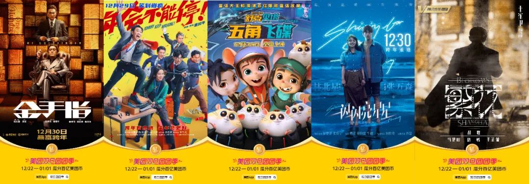 双旦节点,除了互送礼物的仪式感之外,年轻人的观影需求也越来越高,而美团作为线上购票的渠道之一,在双旦期间高能联动了《繁花》、《金手指》、《一闪一闪亮星星》等影视剧资源,聚拢全网目光,打响双旦团团季的消费声势。