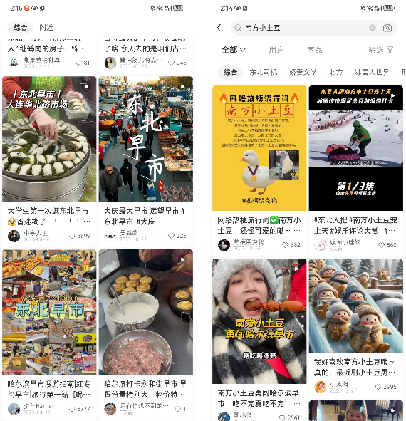 “东北早市太便宜”、“东北菜量怎么这么大”、“东北人把南方小土豆宠上天”。这些有着亲身经历的种草贴,更是进一步加速了东北旅游的热潮。