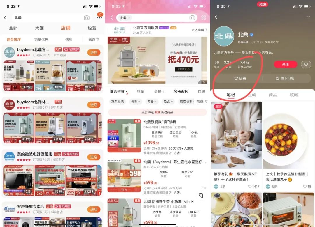 美食+生活博主貌似人手一个北鼎锅+小红书的算法推荐,润物细无声的进行品牌心智的建立跟种草,即使价格会劝退你,但是这种一点点的引诱累积,等有钱了,很大概率会下手!在有需求的时候,首先想到的也是这个品牌。
