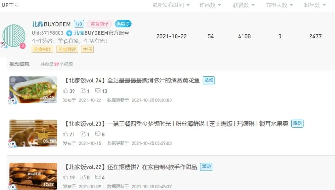 以美食制作的视频为主,治愈系的画面搭配高颜值的厨具(跟前期的视频风格调性不符,明显优化了,但更新频率低,涨粉慢,B站更加考验创作的创意,视频偏向于精致的美食VLOG,更适合小红书)