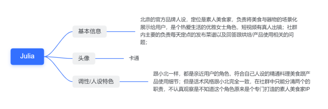 基于上述分析,小北跟Julia这两个品牌IP在跟消费者接触的第一线,但只是一个客服、信息发布者的形象,如果说这是一个福利官的角色,它算是成功的,品牌想要传达给用户的信息增量她都完成了。