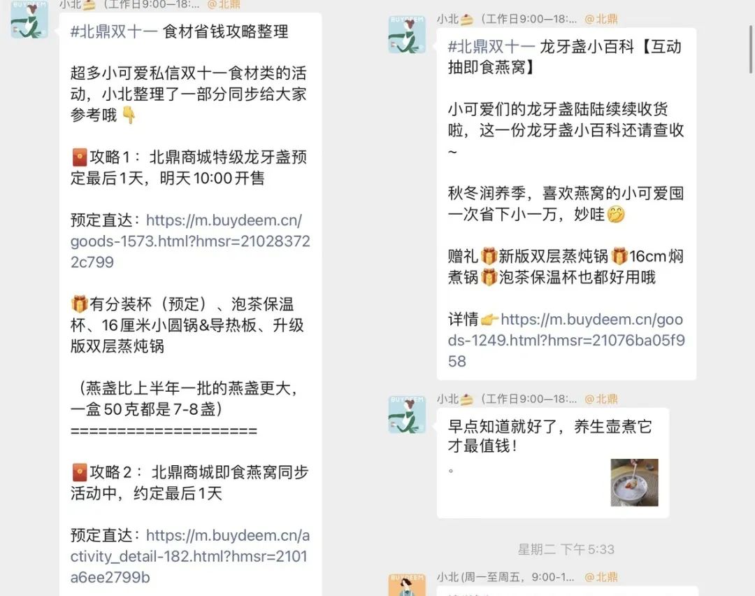 - 北鼎官方跟商城的公众号都是一样的自动回复话术;