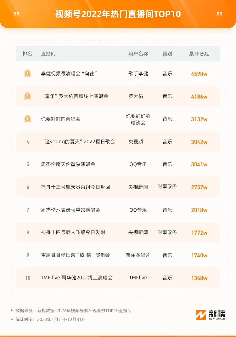 视频号发展比较晚,目前没有特别顶流的账号,本身流行的内容也较少。演唱会、民生时事是视频号唯二破圈的关键内容。民生时事不必多说也不好多说,一个典型例子就是前两年的疫情,当时有不少内容在微信疯狂传播,当然有些内容因各种不可知原因被禁就是后话了。