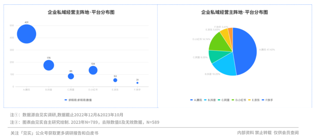 从统计结果来看,私域运营主阵地在不同平台的分布如下(仅展示数量较多的前几个平台):