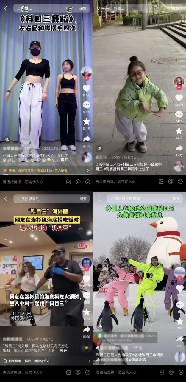 同时,在各个社交平台上,来自不同国家、肤色、年龄、地区的人都在跳「科目三」,让舞蹈「科目三」从国内火到国外,成为了网友社交、娱乐甚至品牌营销的新方式。