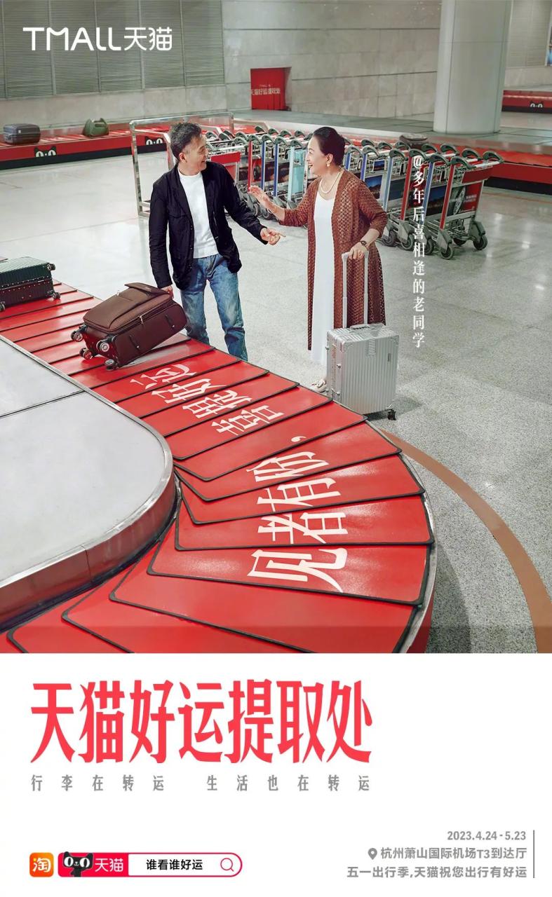 在杭州萧山机场T3到达行李提取处,天猫在每一条传送带上都准备了连连好运。当你落地杭州就能看到天猫好运提取处,提取的不是行李,都是一整箱的好运!天猫希望用一个个好运格,将好运氛围拉满,送给奔赴各自生活里的人。