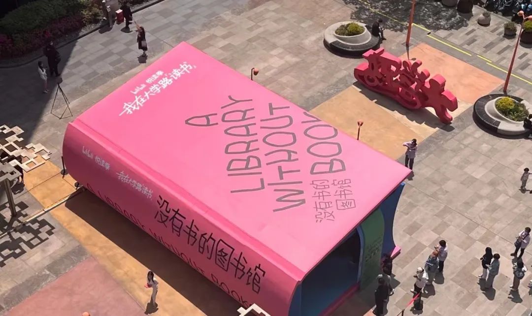 世界读书日,B站在上海大学路上线了一套户外装置——「80平米巨书」,打造「没有书的图书馆」。同时在上海街头摆下了“B站是一个没有书的图书馆,也没有架子”、“每一个学习的人,都是一个在up的主儿”、“站这看,站对面看,去B站看”等文案,自然不生硬,让人直呼“太会了”!将可爱的户外装置结合创意的快闪活动,吸引众多打卡,不得不说b站是懂年轻人的。
