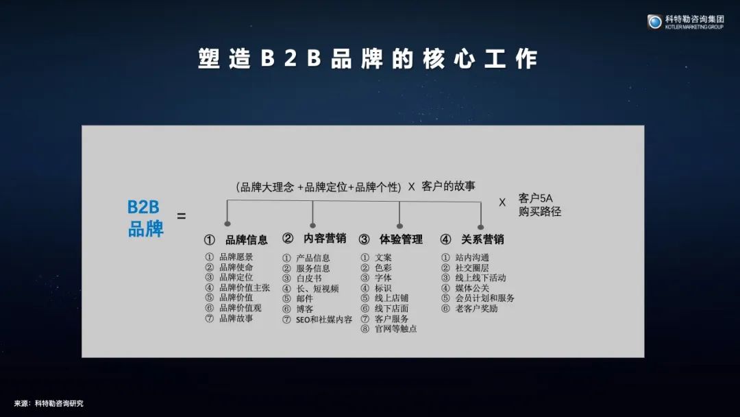 这是一个高度抽象的框架,它指导我们如何理解和思考高价值B2B品牌的构成。我们构建高价值B2B品牌需要考虑的关键要素和维度,为我们指明了方向和框架。