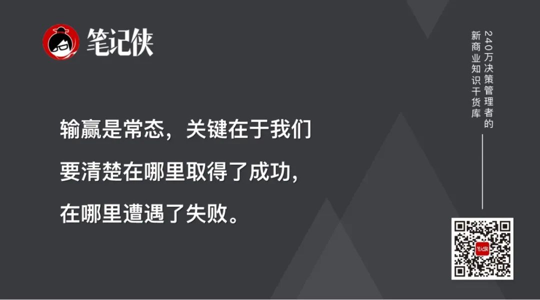 输赢是常态,关键在于我们要清楚在哪里取得了成功,在哪里遭遇了失败。