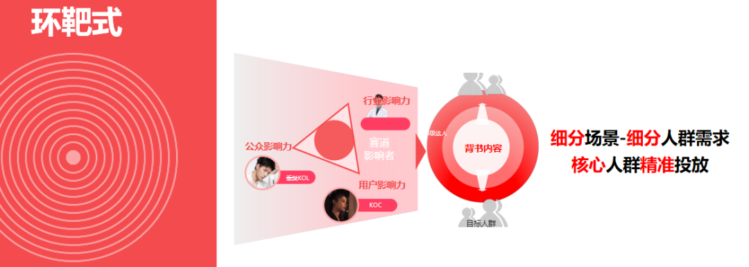 如果预算中等,小红书投放预算在几十万量级,则可以应用环靶式营销解法