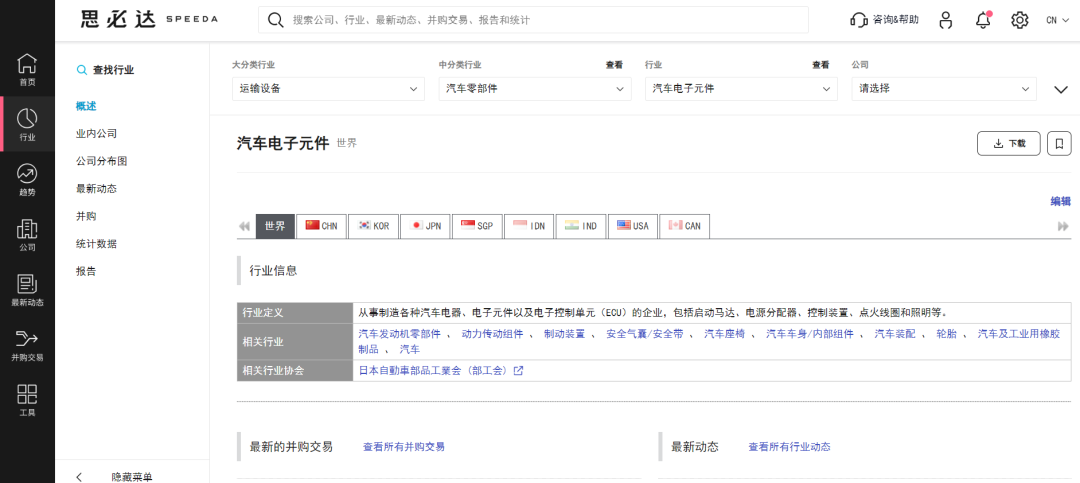 分享完理论框架后,我结合SPEEDA使用的行业报告,以汽车电子元件行业为例展示说明。