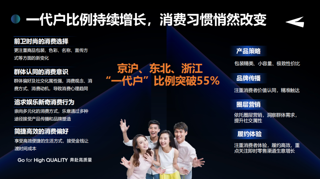 一代户有自己的取舍,我们根据他们的消费行为做了很多判定,比如判断他们没有时间去菜市场买菜或到大超市去买啤酒,所以青啤在即时零售和电商上做了很多部署,也根据客单情况做了很多判断。
