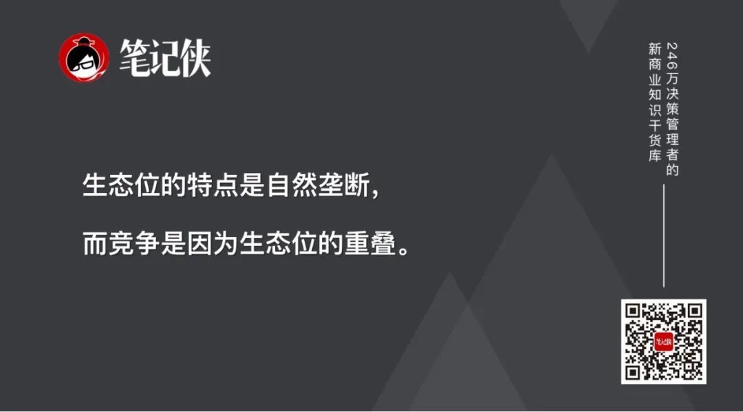 生态位的特点是自然垄断。如果我们说这是一个“生态位”,一定是说生活在这个生态位的物种具有生存的防火墙,其他物种很难进入到这个生态位。