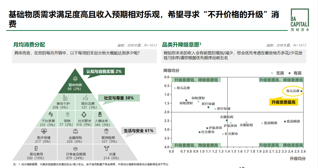 我们发现生活与安全相关的基础消费在县域消费者的花销中占61%左右,他们对品牌和好的消费有概念,但背后每个品类的升级逻辑上还是有优先顺序。