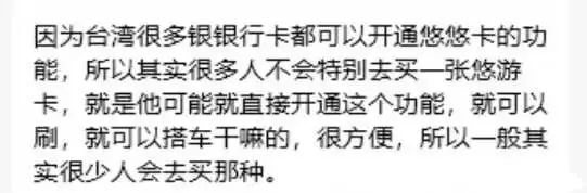 况且经过一番深入摸索,阿广才知道其实台湾多数银行卡都能开通交通功能,所以悠游卡对本地人的实用性也就一降再降。