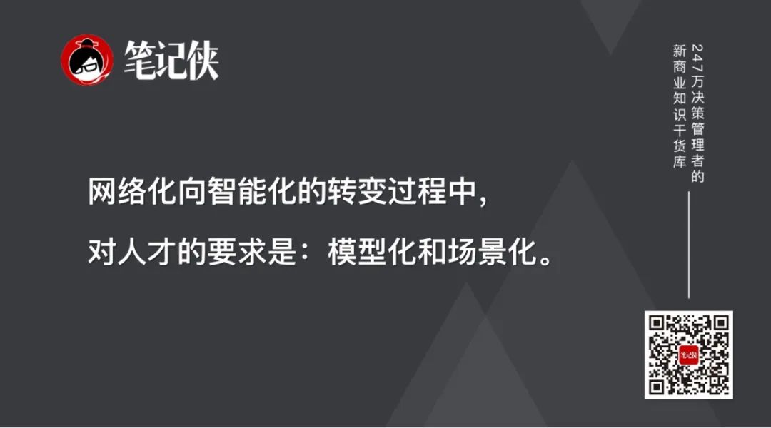 现在我们正处于网络化向智能化的转变过程中,对人才的要求也就变成了模型化和场景化;
