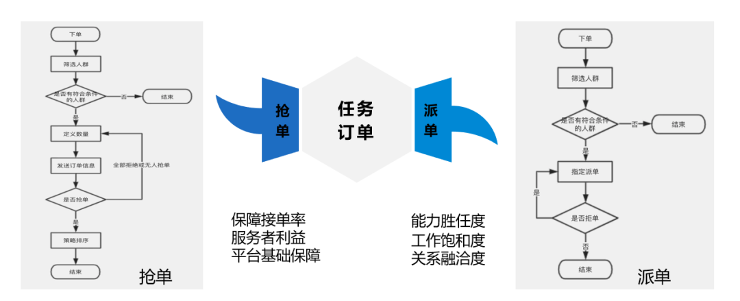 最后,创新型的工作,这类工作只要梳理出标准化的流程,梳理出面向工作的标签和面向人的标签,结合在一起就可以进行派单和抢单。