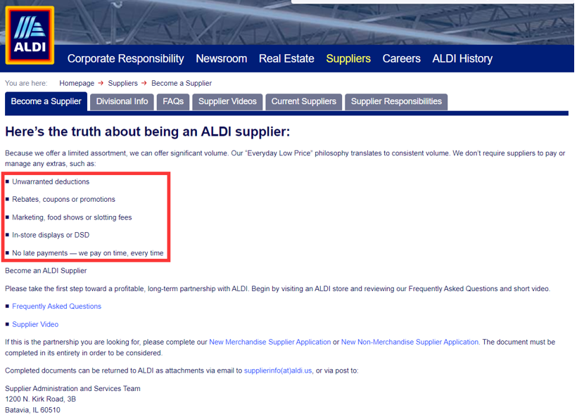 虽然要求严苛,但是Aldi是善待供应商的,供应商也非常愿意合作Aldi: