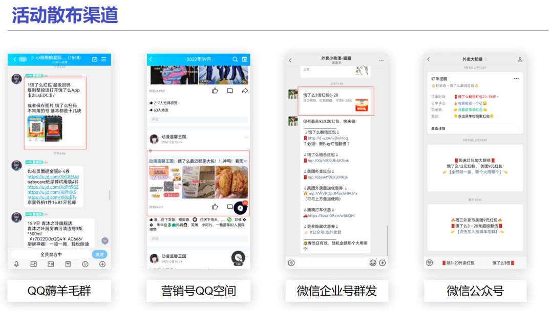 能够常见的几个渠道:各种羊毛群、自媒体营销号、外卖福利平台等。可见这个活动的量级还是很大的。
