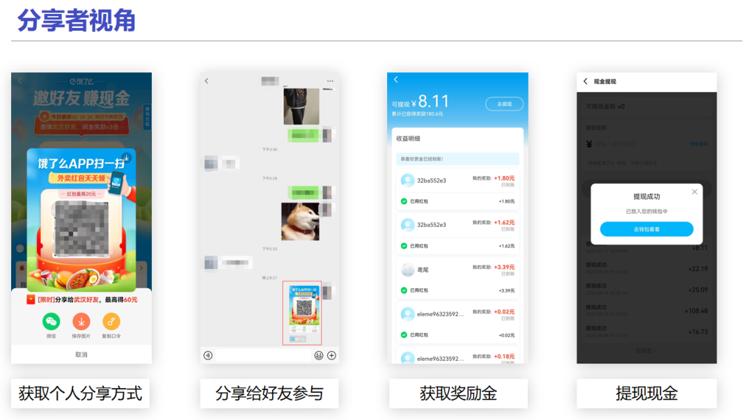 饿了么天天赚现金活动以“分享”和“双向激励”为核心。