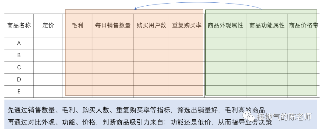 toC业务中,用户只会“用脚投票”,判断商品需求需要从用户行为倒推。看哪些商品消费频次高、周转快、能连带其他商品,先选出优质商品,再倒推用户喜欢的点是啥(如下图)。