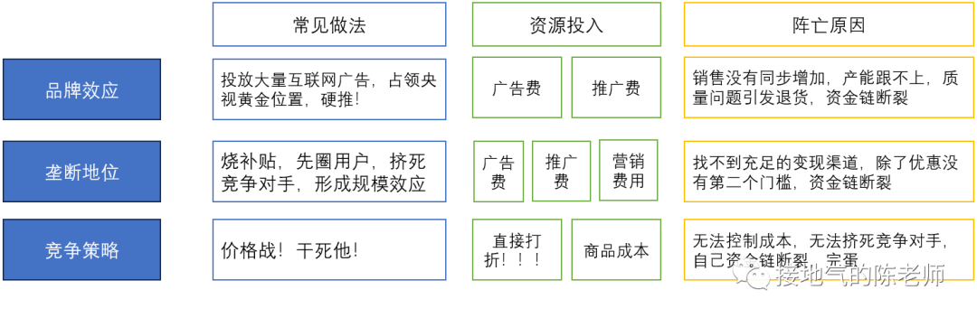 历史上无数企业,就倒在了争取溢价的路上。传统企业的常见死法,是投入了天价广告费企图获得品牌溢价,结果资金链断裂,完蛋;
