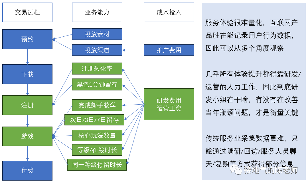 服务型产品,主打的是服务体验。服务体验是很难衡量通过硬指标对比的东西,因此服务业会采集很多用户行为指标,来反映用户体验的好坏。