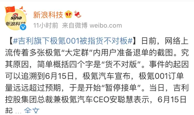 然而,这把“完美开局”当时却差点被极氪自己搞砸。无论是盲订期间的“违约涨价、临时简配”等销售事故,还是新车交付后车机频出故障,都让这个带点“国货之光”色彩的新品牌几近人设崩塌。