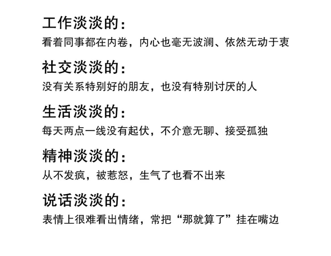 在i人和发疯之后,淡人和淡学成为新的网络热点,从网络梗出现的频率来看,淡人的出现不算新鲜事,以往早就有类似的概念。
