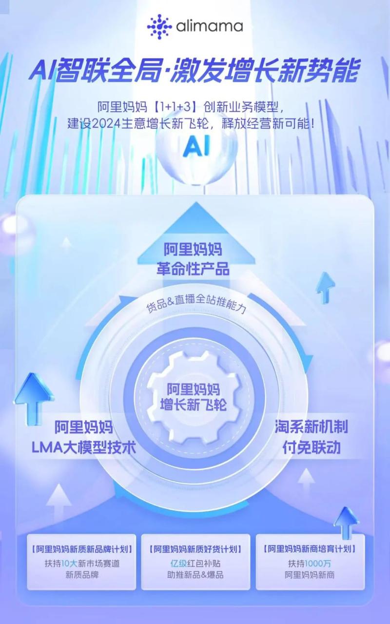 2024开年,阿里妈妈正式推出【1+1+3】创新业务模型,通过1个大模型技术、1个革命性的产品、以及3大商家扶持计划,让AI电商变为现实。据我了解,阿里妈妈此次提供的并非“AI客服”“图文生成”等局部智能,而是从技术、产品再到商家赋能的全面升维。这意味着,即使绝大部分缺少技术能力的商家,也能用好AI,转动新的增长飞轮。