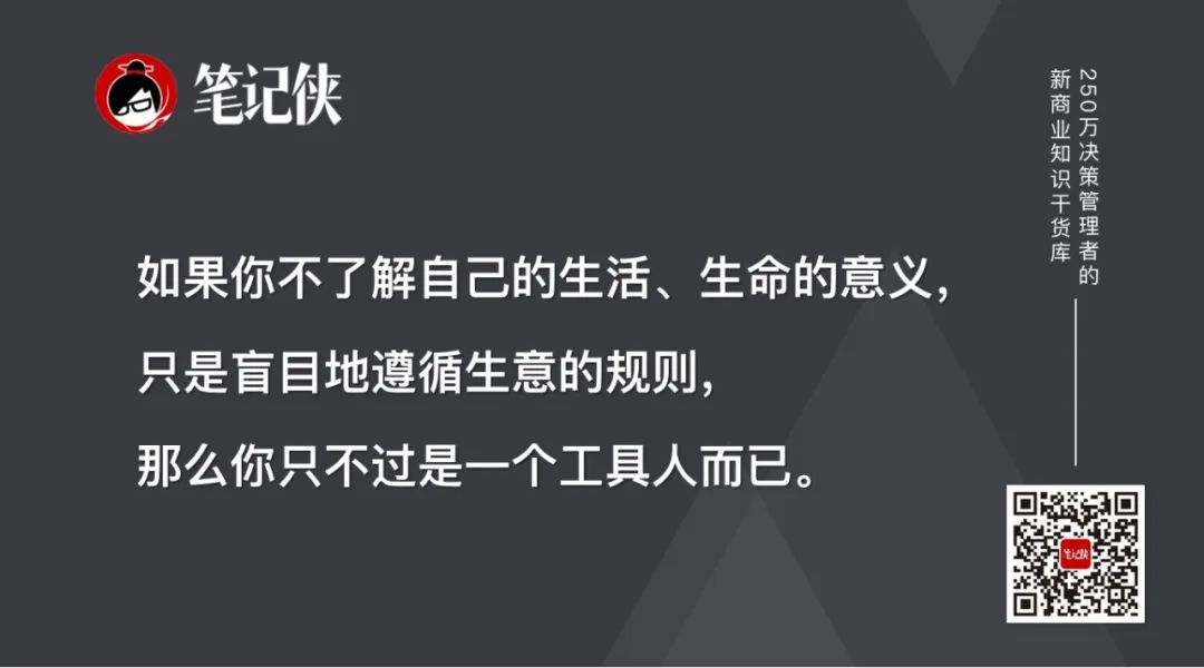 如果你完全不了解自己的生活、生命的意义,只是盲目地遵循生意的规则,那么你只不过是一个工具人而已。