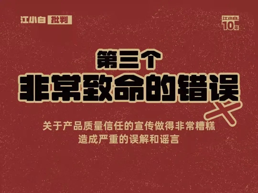 一个传播能力特别强的品牌,尤其是这个传播能力偏离了品牌的核心价值的时候,会起到反作用。在江小白这个案例上,顾客因为品牌的营销能力太强,对他的产品能力产生了担忧,但是他继续用营销能力去回应这个担忧。