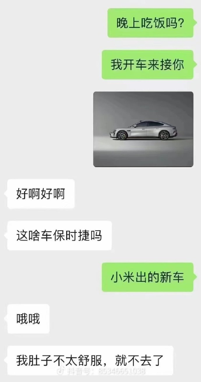 小米像保时捷,让消费者津津乐道,当然它也会有负面信息反噬,比如下面的段子就是如此,但对于一个全新的汽车品牌来说,这样做是利大于弊的。