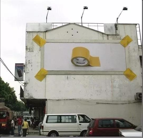 这一定是对自家的产品过分的自信,就拿四个角用胶带就能将一巨型广告牌固定住。可以说是非常有创意和自信了!难怪这个广告赢得2007年戛纳广告奖的银奖。