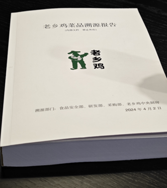 针对这些问题和整个供应链的情况,老乡鸡最后形成了20万字的《老乡鸡菜品溯源报告》,向社会全面原文公开。