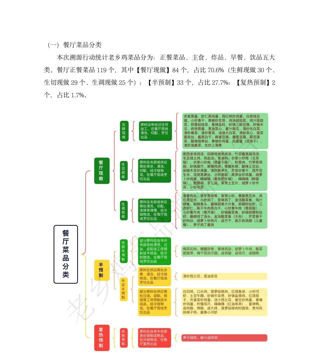 而根据这份《老乡鸡菜品溯源报告》显示,老乡鸡当前正餐菜品中“餐厅现做”占比70.6%,“半预制”占比27.7%,“复热预制”占比1.7%。
