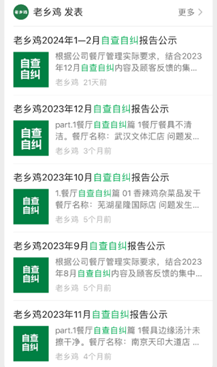 比如,对于食品安全的重视,尤其是站在消费者角度做企业决策,老乡鸡不是现在才有的。2016年老乡鸡就决定把厨房做成透明化,2021年他们开始发布自查自纠报告,到现在已经发布34 篇。