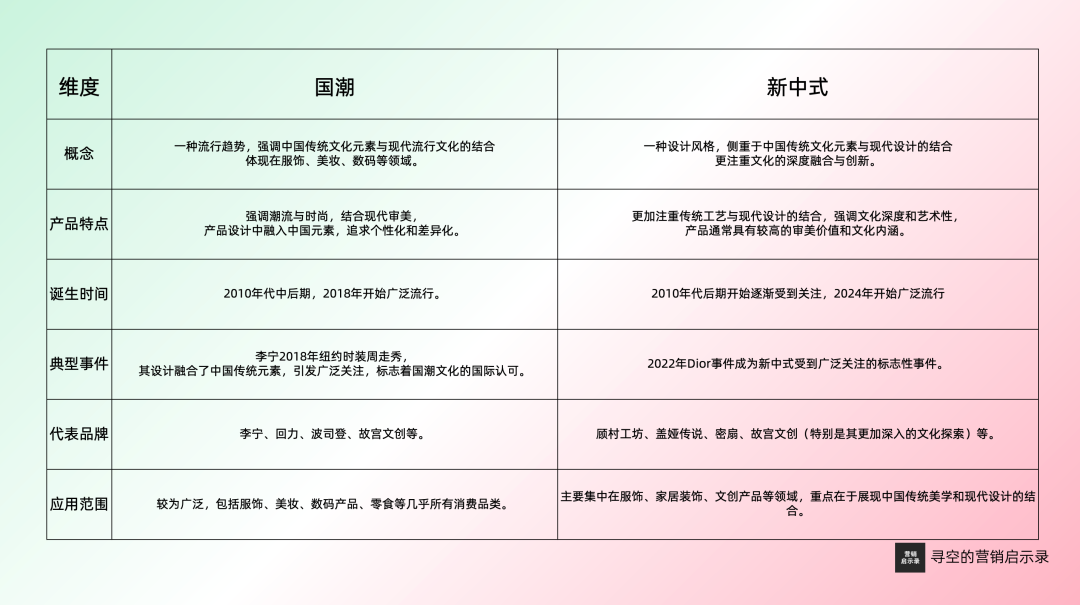 虽然新中式是紧随国潮之后的中式潮流,但二者并不相同,以下是二者的区别。
