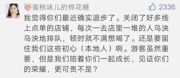 好处是本地顾客对茶颜悦色有包容心,愿意陪伴品牌的成长。如果有人对损害品牌的文化价值,身为本地顾客的忠实粉丝会主动帮助品牌澄清。