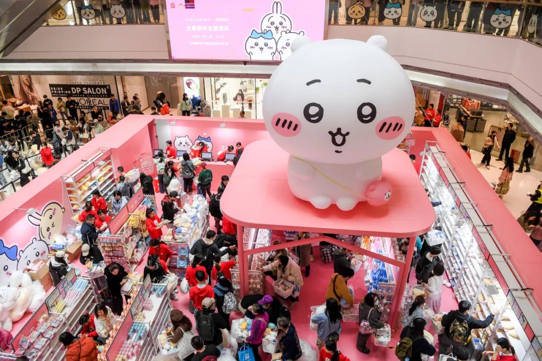 在国内,名创优品通过不断联名IP,迎来一波又一波的消费浪潮,比如最近在上海静安大悦城的名创优品XChiikawa快闪店,3天业绩超800万。