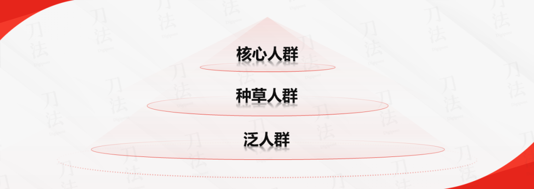 在全域内容营销范畴里,我们讲究三个人群,核心人群,种草人群,泛人群。